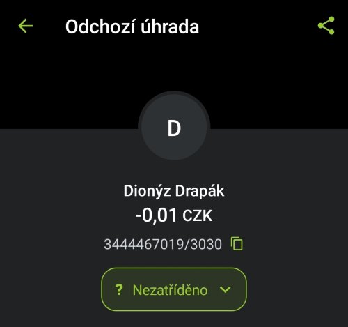 Poslat zprávupřidal/a skutečné jméno majitele účtu: Dionýz Drapák k bankovnímu účtu: 3444467019/3030