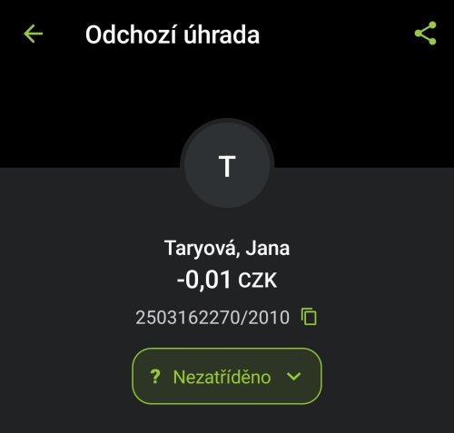 Poslat zprávupřidal/a skutečné jméno majitele účtu: Jana Taryová k bankovnímu účtu: 2503162270/2010