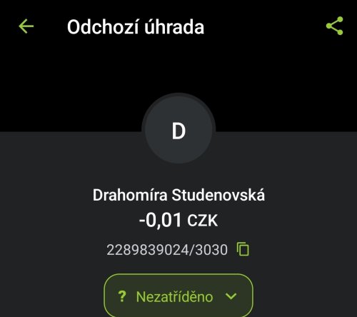 Poslat zprávupřidal/a skutečné jméno majitele účtu: Drahomíra Studenovská k bankovnímu účtu: 2289839024/3030