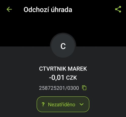 Poslat zprávupřidal/a skutečné jméno majitele účtu: Marek Ctvrtnik k bankovnímu účtu: 258725201/0300