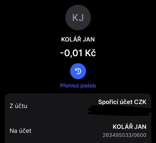Poslat zprávupřidal/a skutečné jméno majitele účtu: Jan Kolář k bankovnímu účtu: 263495033/0600