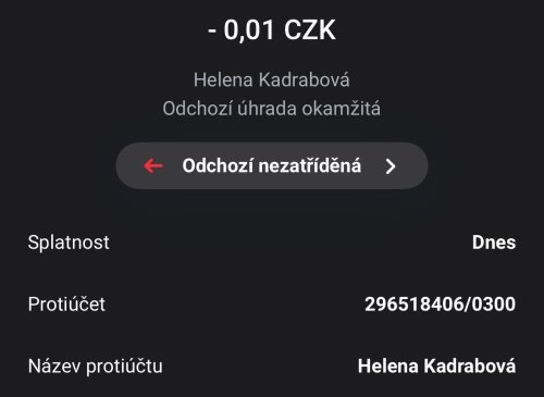 Poslat zprávupřidal/a skutečné jméno majitele účtu: Helena Kadrabová k bankovnímu účtu: 296518406/0300