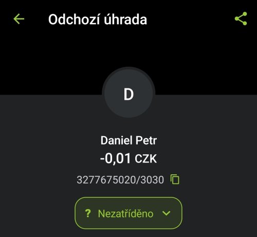 Poslat zprávupřidal/a skutečné jméno majitele účtu: Petr Daniel k bankovnímu účtu: 3277675020/3030