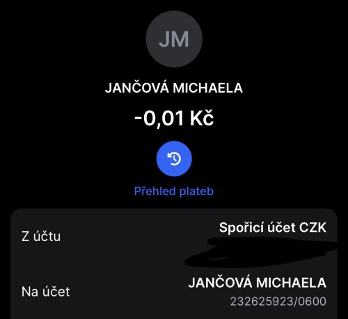 Poslat zprávupřidal/a skutečné jméno majitele účtu: Michaela Jančová k bankovnímu účtu: 232625923/0600