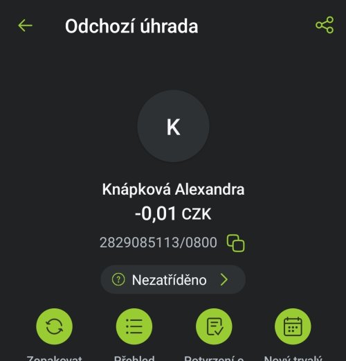 Poslat zprávupřidal/a skutečné jméno majitele účtu: Alexandra Knápková k bankovnímu účtu: 2829085113/0800
