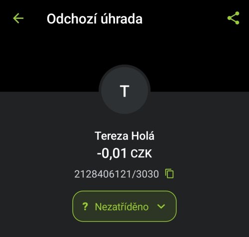 Poslat zprávupřidal/a skutečné jméno majitele účtu: Tereza Holá k bankovnímu účtu: 2128406121/3030