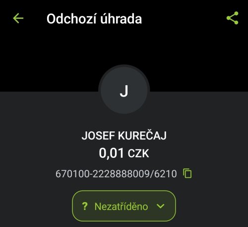 Poslat zprávupřidal/a skutečné jméno majitele účtu: Josef Kurečaj k bankovnímu účtu: 670100-2228888009/6210