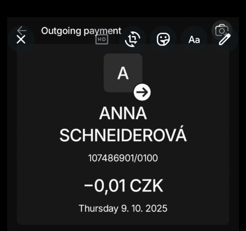 | 09. 10. 2025 | Online přes portál | 107486901/0100 | 1000,- | - |