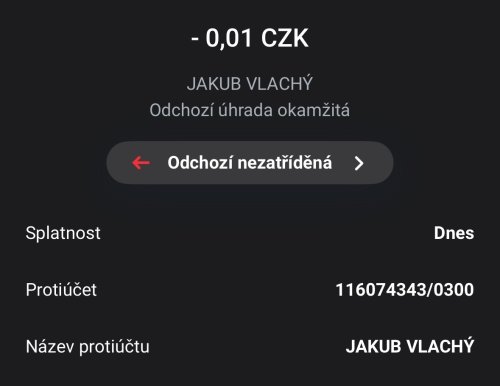 Poslat zprávupřidal/a skutečné jméno majitele účtu: Jakub Vlachý k bankovnímu účtu: 116074343/0300
