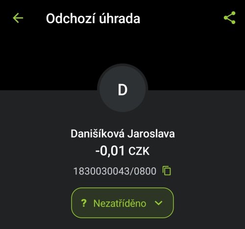 Poslat zprávupřidal/a skutečné jméno majitele účtu: Jaroslava Danišíková k bankovnímu účtu: 1830030043/0800