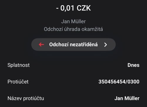 Poslat zprávupřidal/a skutečné jméno majitele účtu: Jan Müller k bankovnímu účtu: 350456454/0300