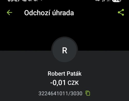 Poslat zprávupřidal/a skutečné jméno majitele účtu: Robert Paták k bankovnímu účtu: 3224641011/3030