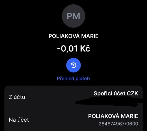 Poslat zprávupřidal/a skutečné jméno majitele účtu: Marie Poliaková k bankovnímu účtu: 264874967/0600