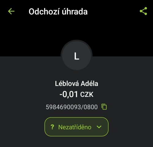 Poslat zprávupřidal/a skutečné jméno majitele účtu: Adéla Léblová k bankovnímu účtu: 5984690093/0800