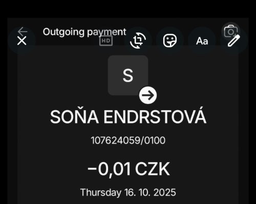 | 13. 10. 2025 | Online přes portál | 107624059/0100 | 500,- | - |