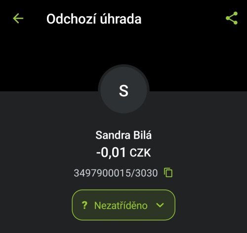Poslat zprávupřidal/a skutečné jméno majitele účtu: Sandra Bílá k bankovnímu účtu: 3497900015/3030