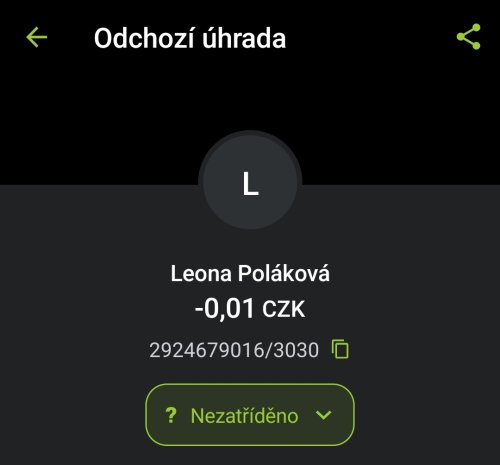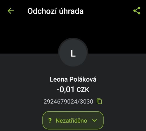 Poslat zprávupřidal/a skutečné jméno majitele účtu: Leona Poláková k bankovnímu účtu: 2924679016/3030