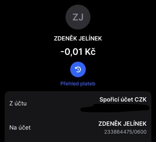 Poslat zprávupřidal/a skutečné jméno majitele účtu: Zdeněk Jelínek k bankovnímu účtu: 233864475/0600
