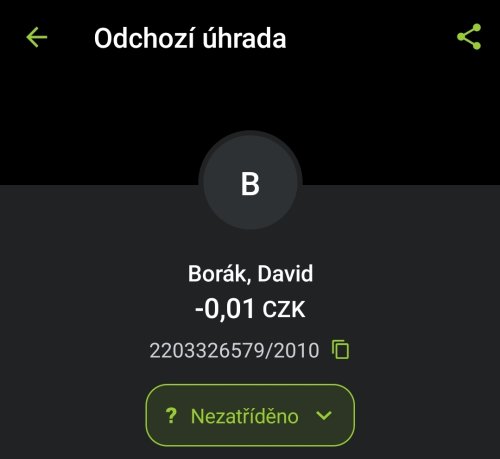 Poslat zprávupřidal/a skutečné jméno majitele účtu: David Borák k bankovnímu účtu: 2203326579/2010