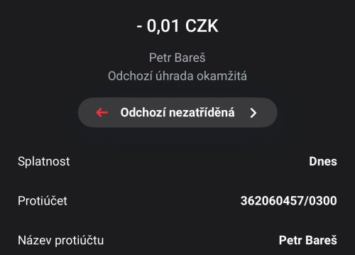 Poslat zprávupřidal/a skutečné jméno majitele účtu: Petr Bareš k bankovnímu účtu: 362060457/0300