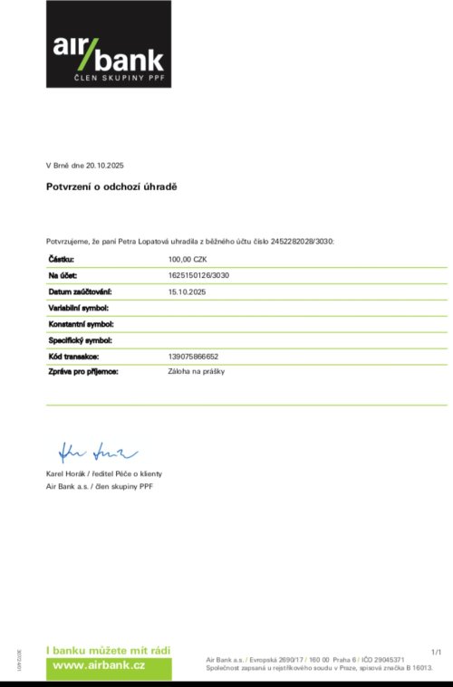 Poslat zprávupřidal/a skutečné jméno majitele účtu: Daniel Vorel k bankovnímu účtu: 1625150126/3030