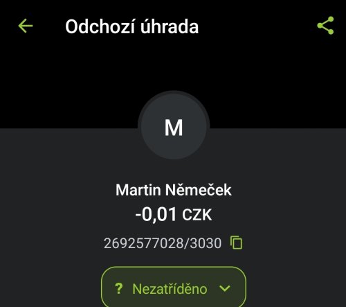 Poslat zprávupřidal/a skutečné jméno majitele účtu: Martin Němeček k bankovnímu účtu: 2692577028/3030