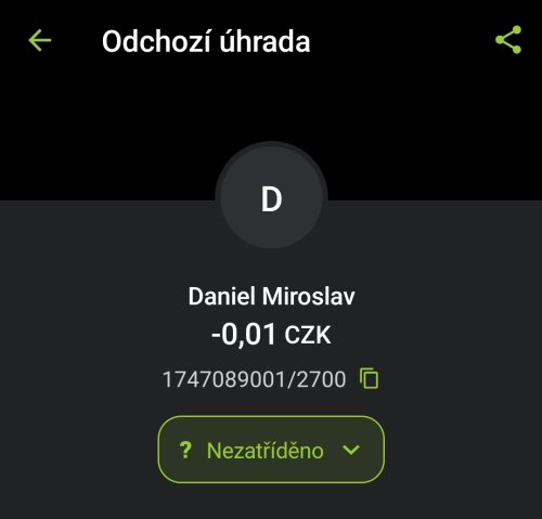 Poslat zprávupřidal/a skutečné jméno majitele účtu: Miroslav Daniel k bankovnímu účtu: 1747089001/2700