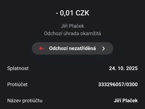 Poslat zprávupřidal/a skutečné jméno majitele účtu: Jiří Plaček k bankovnímu účtu: 333296057/0300