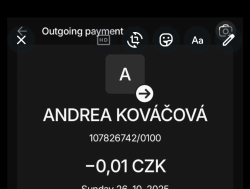 přidal/a skutečné jméno majitele účtu: Andrea Kováčová k bankovnímu účtu: 107826742/0100