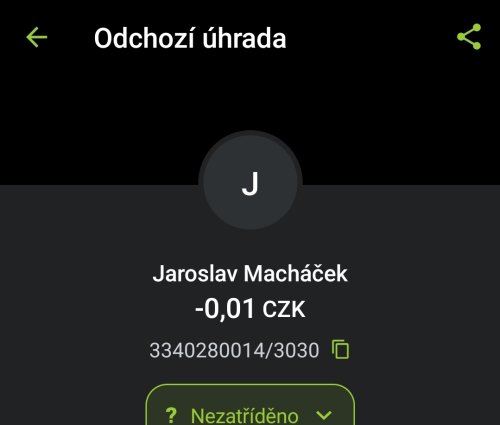 Poslat zprávupřidal/a skutečné jméno majitele účtu: Jaroslav Macháček k bankovnímu účtu: 3340280014/3030