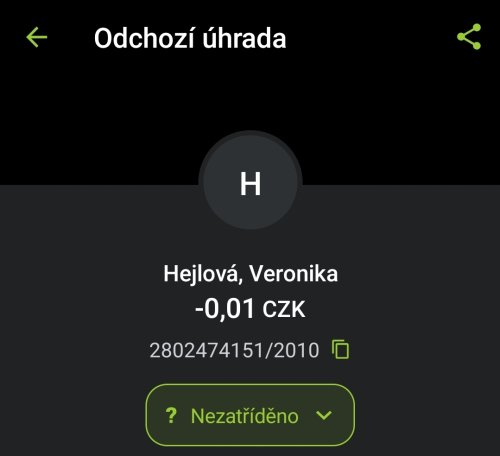 Poslat zprávupřidal/a skutečné jméno majitele účtu: Veronika Hejlová k bankovnímu účtu: 2802474151/2010
