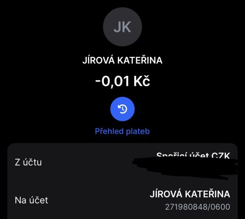 Poslat zprávupřidal/a skutečné jméno majitele účtu: Kateřina Jírová k bankovnímu účtu: 271980848/0600