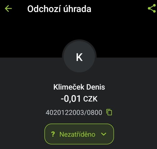 Poslat zprávupřidal/a skutečné jméno majitele účtu: Denis Klimeček k bankovnímu účtu: 4020122003/0800