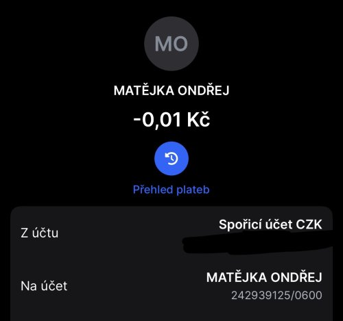 Poslat zprávupřidal/a skutečné jméno majitele účtu: Ondřej Matějka k bankovnímu účtu: 242939125/0600