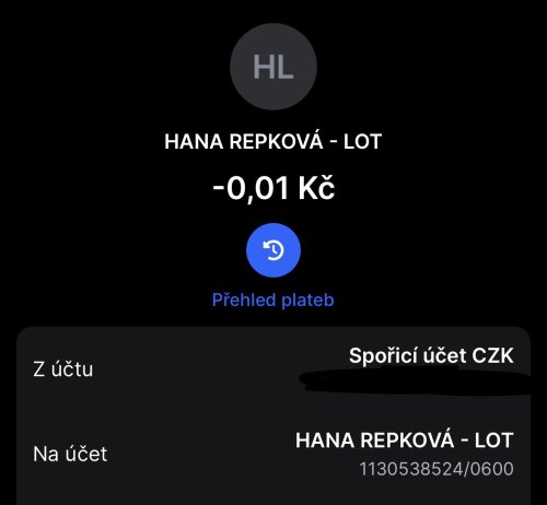 Poslat zprávupřidal/a skutečné jméno majitele účtu: Hana Repková k bankovnímu účtu: 1130538524/0600