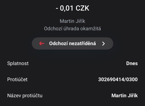 Poslat zprávupřidal/a skutečné jméno majitele účtu: Martin Jiřík k bankovnímu účtu: 302690414/0300