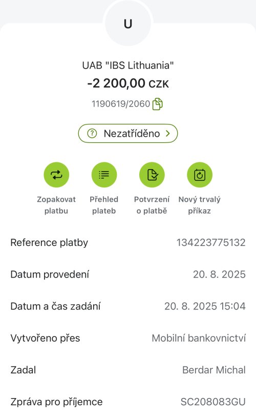 | 20. 08. 2025 | Online přes portál | 1190619/2060 | 2000,- | - |