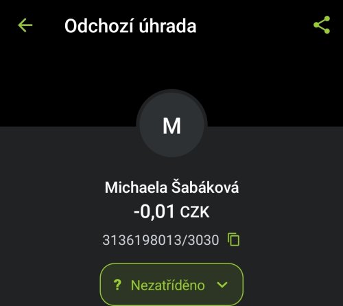 Poslat zprávupřidal/a skutečné jméno majitele účtu: Michaela Šabáková k bankovnímu účtu: 3136198013/3030