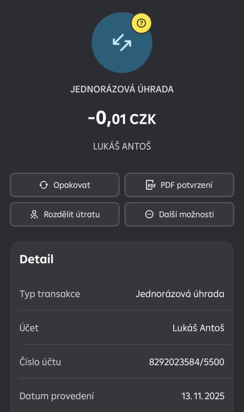 Poslat zprávupřidal/a skutečné jméno majitele účtu: Lukáš Antoš k bankovnímu účtu: 8292023584/5500