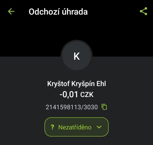 Poslat zprávupřidal/a skutečné jméno majitele účtu: Kryštof Kryšpín Ehl k bankovnímu účtu: 2141598113/3030