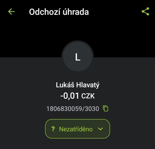 Poslat zprávupřidal/a skutečné jméno majitele účtu: Lukáš Hlavatý k bankovnímu účtu: 1806830059/3030