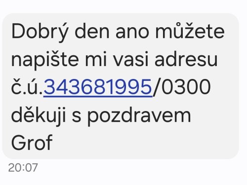Poslat zprávupřidal/a skutečné jméno majitele účtu: Milan Grof k bankovnímu účtu: 343681995/0300