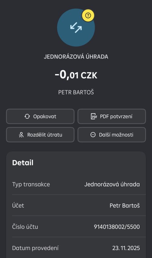 Poslat zprávupřidal/a skutečné jméno majitele účtu: Petr Bartoš k bankovnímu účtu: 9140138002/5500
