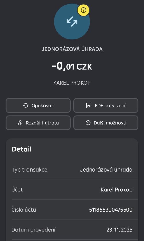 Poslat zprávupřidal/a skutečné jméno majitele účtu: Karel Prokop k bankovnímu účtu: 5118563004/5500
