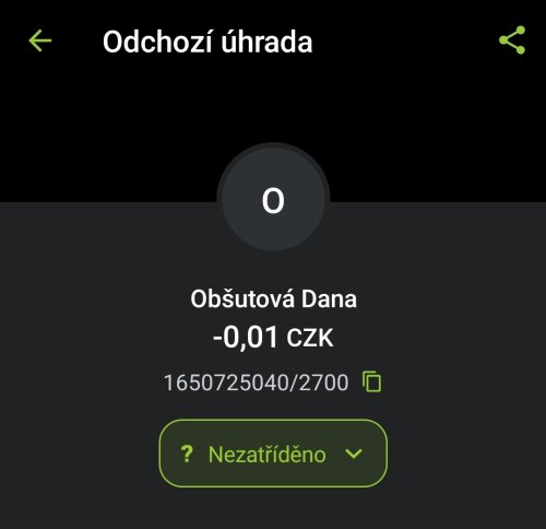 Poslat zprávupřidal/a skutečné jméno majitele účtu: Dana Obšutová k bankovnímu účtu: 1650725040/2700
