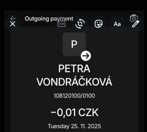 Poslat zprávupřidal/a skutečné jméno majitele účtu: Petra Vondráčková k bankovnímu účtu: 108120100/0100