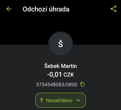 Poslat zprávupřidal/a skutečné jméno majitele účtu: Martin Šebek k bankovnímu účtu: 5754548083/0800