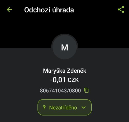 Poslat zprávupřidal/a skutečné jméno majitele účtu: Zdeněk Maryška k bankovnímu účtu: 806741043/0800