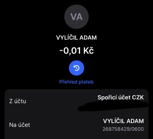 Poslat zprávupřidal/a skutečné jméno majitele účtu: Adam Vylíčil k bankovnímu účtu: 268758429/0600