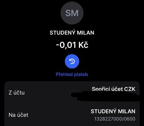 Poslat zprávupřidal/a skutečné jméno majitele účtu: Milan Studený k bankovnímu účtu: 1328227000/0600